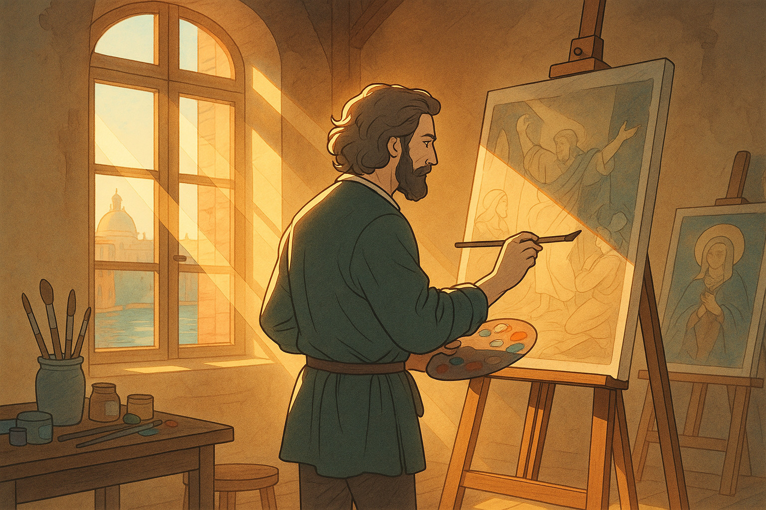 彼はヴェネツィアで生まれ育ち、ぜ〜んぶ独学で絵を学びました。