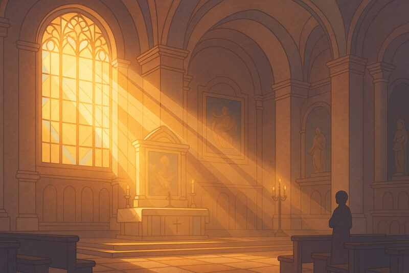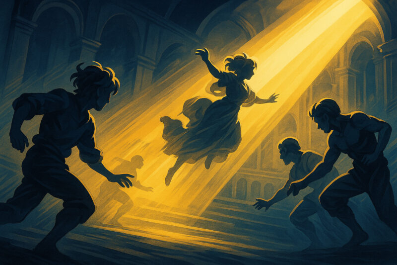 暗闇の中で金色の光がにじんで、神秘と現実の境界があいまいになる瞬間。